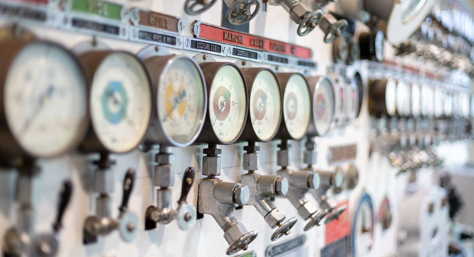 Forward steam engine control panel from the aircraft carrier Clemenceau (1961-1997)