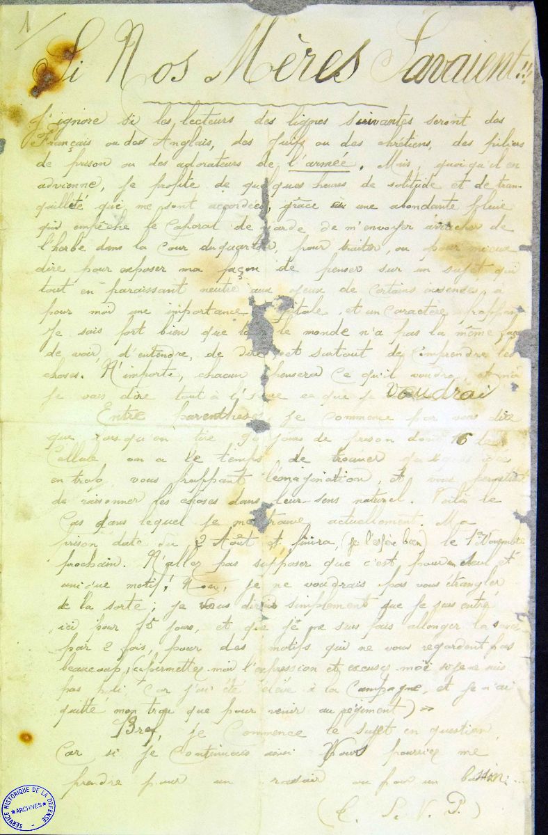 La particularité de cette lettre assez confuse, est d’être scandée par la formule « Si nos mères savaient ».