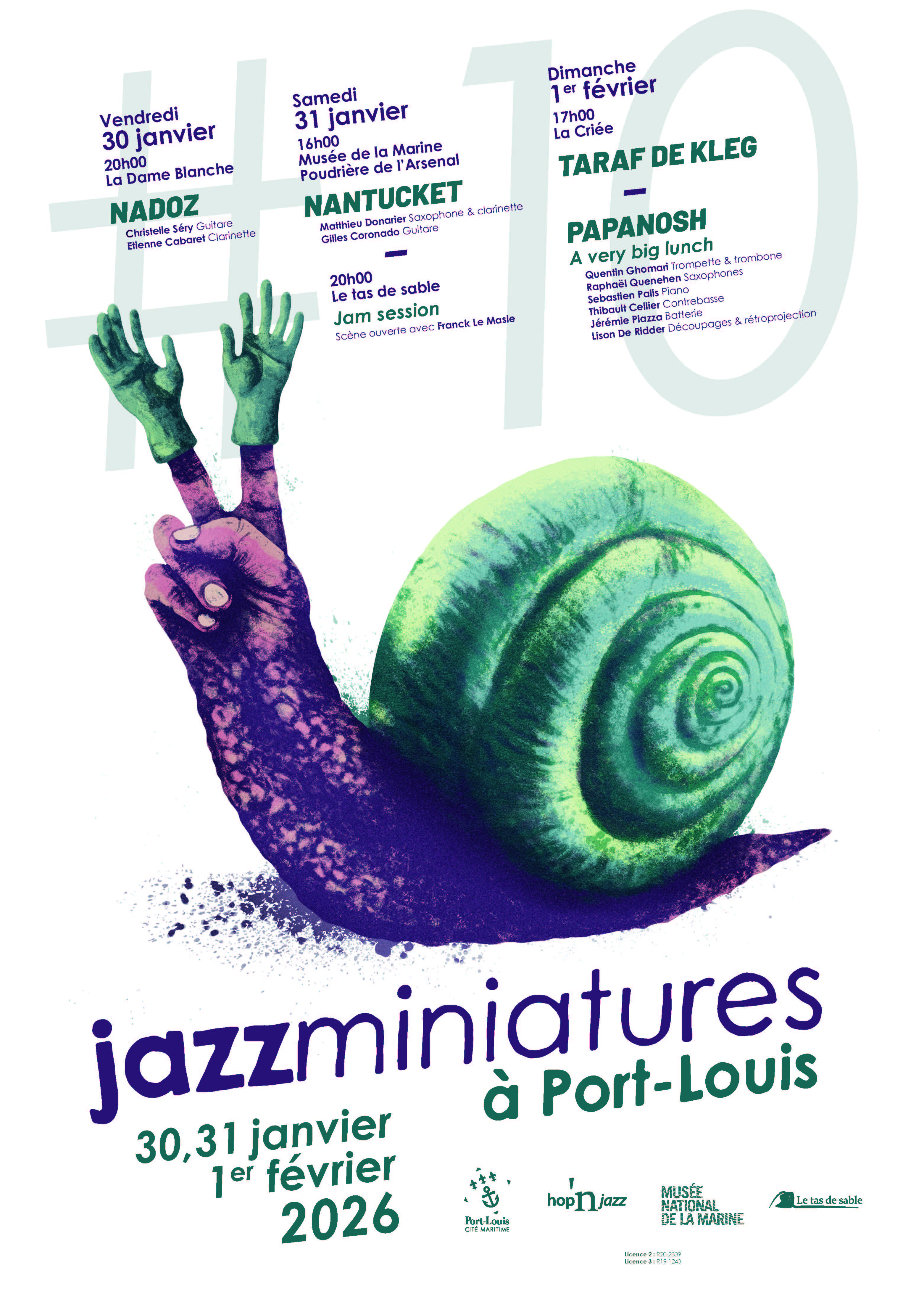 Le musée national de la Marine vous propose un Concert de Jazz miniature en partenariat avec hop’njazz et la ville de Port-Louis le samedi 31 janvier 2026 à la poudrière de la Citadelle.