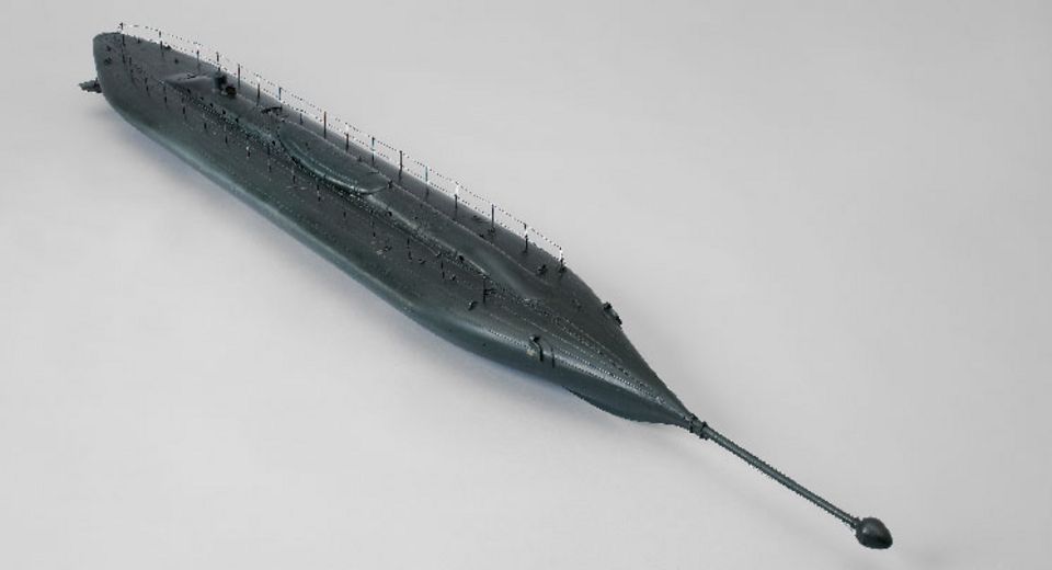 Modèle au 1/33 du sous-marin expérimental mis en chantier à Rochefort en 1860, lancé en 1863 et rayé des listes en 1935
