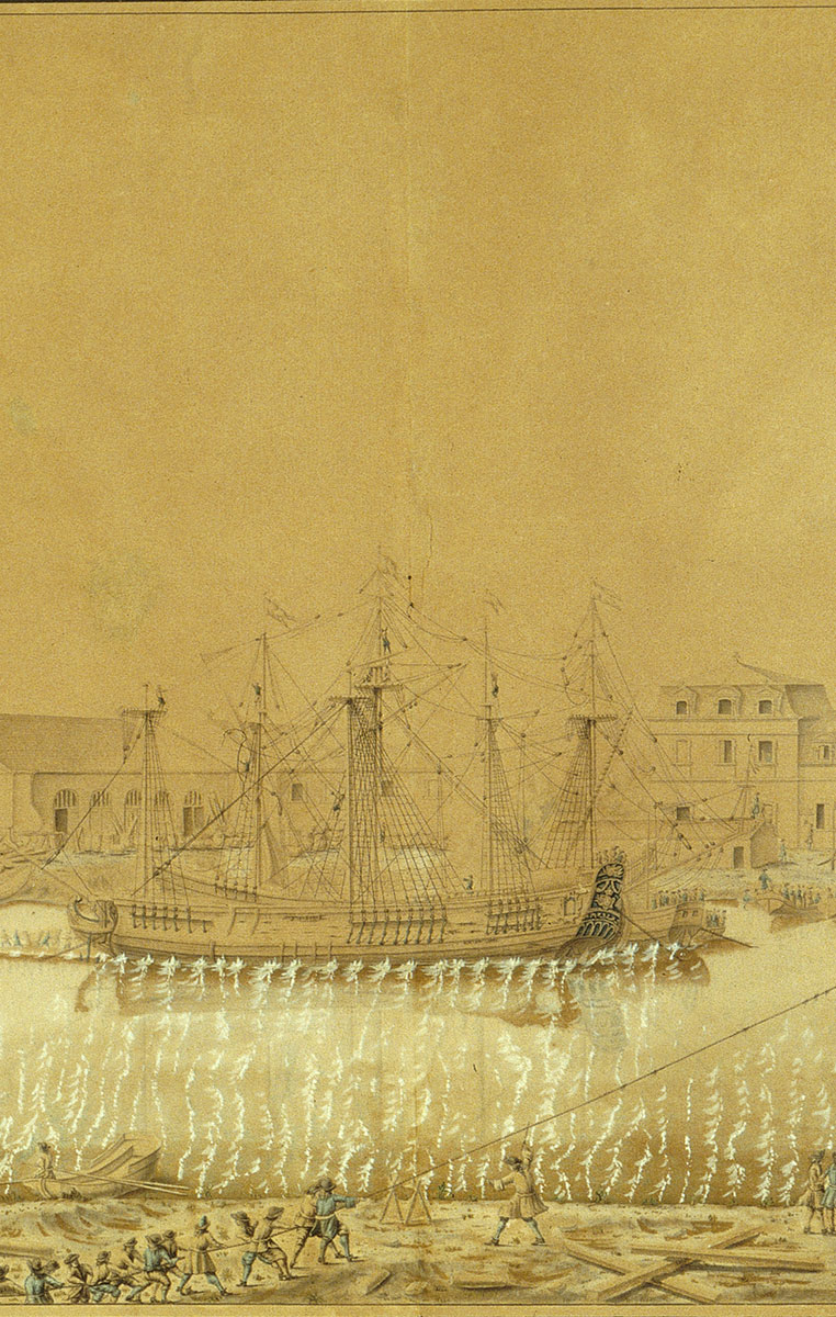 À cette date, les rives de la Charente sont en pleine ébullition. La Corderie royale, où sont fabriqués les cordages utilisés sur les navires, est déjà achevée. Les travaux de construction de la première forme de radoub, bassin où sont réparés et entretenus les navires, démarrent sous les fenêtres de l’hôtel de Cheusses.