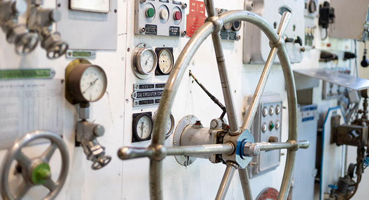 Le porte-avions Clemenceau était doté d’un tableau de manœuvre de machine qui commandait un système de propulsion composé de six chaudières, quatre turbines à vapeur et deux hélices. La vapeur produite à partir de fuel alimentait les turbines ou « groupes turbo-réducteurs ». Ceux-ci actionnaient ensuite deux systèmes d’entraînement appelés « lignes d’arbres », mettant en mouvement les hélices du bâtiment. Sur le tableau de commande, un grand volant de manœuvre servait à agir sur la vitesse en réglant l’admission de vapeur aux turbines. Les nombreux cadrans, les différents compteurs et les appareils de réglage permettaient quant à eux de contrôler les générateurs de vapeur et les turbines. Des appareils de transmission d’ordre permettaient aux mécaniciens de modifier l’allure du bateau, selon les instructions transmises par la passerelle.