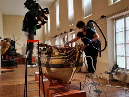 Une opération délicate et impressionnante se tient ce mois-ci à Toulon, pendant la fermeture annuelle du musée : la restauration de la maquette du Duquesne, pièce maîtresse du musée national de la Marine.